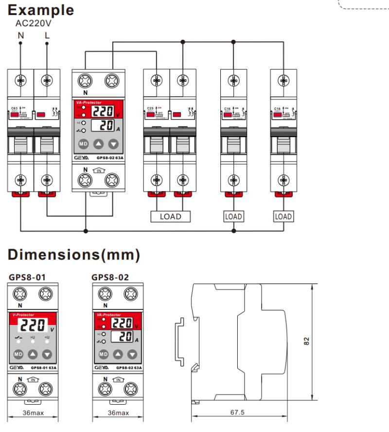 | Model NO. | GPS8-01 Voltage Protector with Over and Under Voltage Funtion |