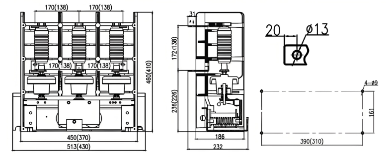 | Phase-phase/phase-to-ground power frequency withstand voltage | (KV) | 42(32) | 42(32) | 42(32) | 42(32) | 42(32) |