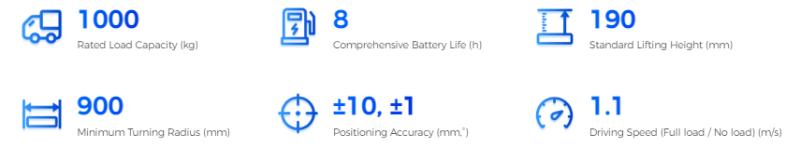 The pallet truck newly designed by SEER Robotics has a load capacity of up to 1 ton. The robot width is only 1200 mm, and the minimum aisle width is only 1300 mm, ensuring smooth passage in narrow aisles.