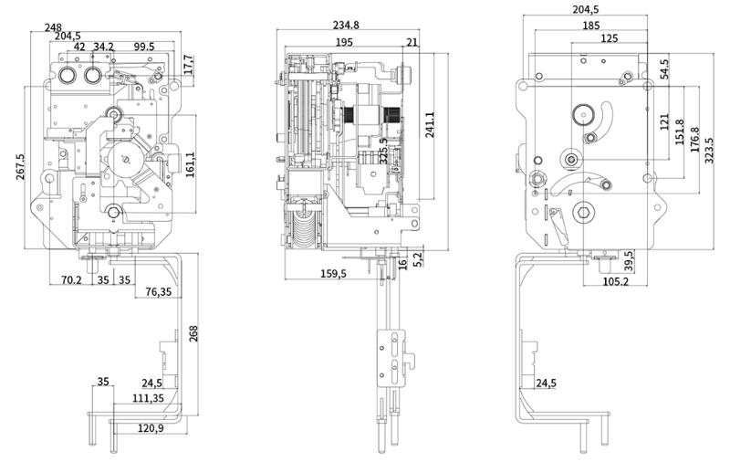 Grounding closing: Insert the dedicated handle of the mechanism into the grounding operation shaft at the lower part of the mechanism, rotate it clockwise by about 90 °, and the grounding energy storage spring will release energy instantly when compressed past the midpoint to push the grounding switch to complete the grounding closing. At this time, the mechanism is interlocked and locked, and the main circuit cannot be closed.