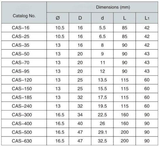 Model NO. | CAS Series copper aluminum terminal block (export type) |