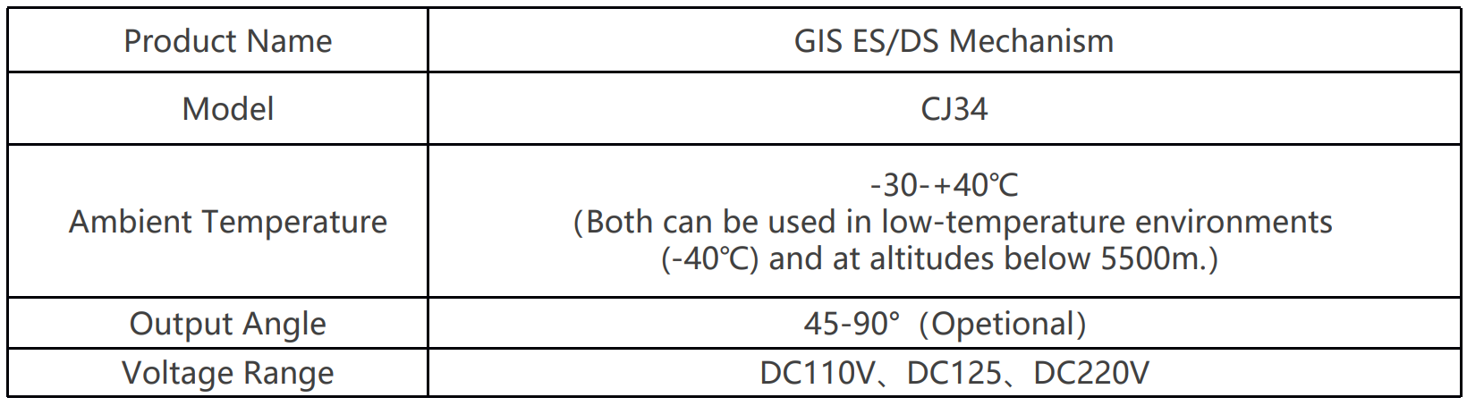 Model NO. | CJ34 Grounding switch and isolation switch dedicated mechanism |