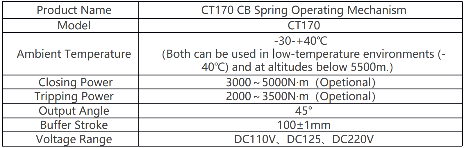Model NO. | CT170 GIS Circuit Breaker Spring Operating Mechanism |