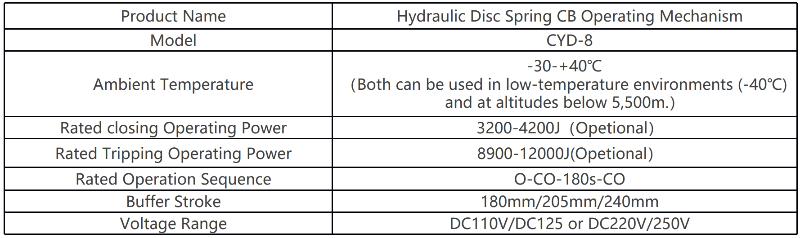 | Model NO. | CYD-8 Hydraulic Disc Spring Operating Mechanism |