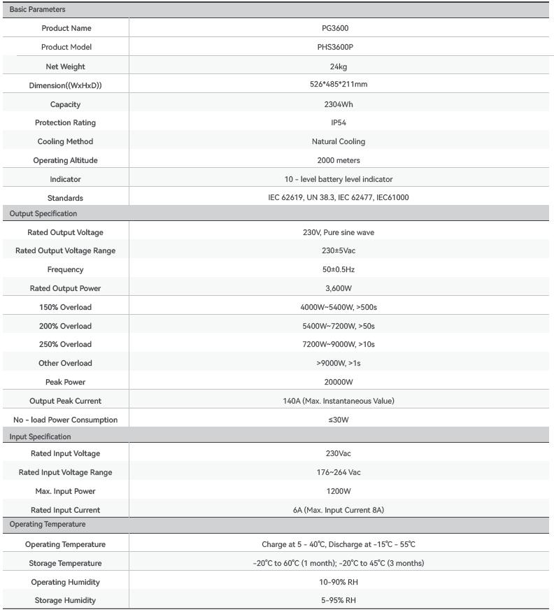 Powerful Output: Continuous output power up to 3600W, peak power up to 20000W, easily handling high-load demands.