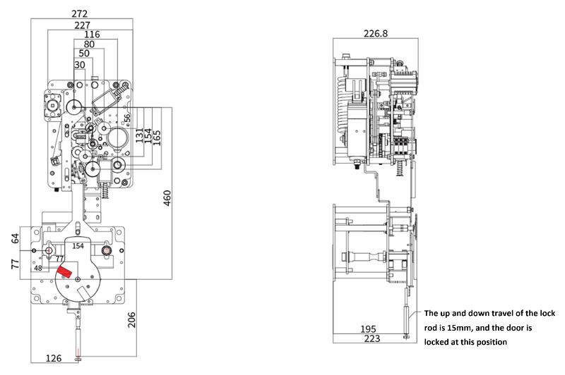 A VHK-J12 környezetvédelmi szekrényben lévő elszakító működési mechanizmus VHK-J12 átkapcsoló újraindítási csavarkészlettel van felszerelve, míg az elszakító rész RNHSG-07 nyomóerőségű elszakító működési mechanizmussal. Az elszakító gép előre irányuló típusú, a V működési mechanizmus pedig fordított típusú, egyetlen rúdszerű mechanikai szerkezet révén valósítva meg a záróajtóval történő összekapcsolást. Csak akkor nyitható meg az alsó ajtó, ha a fő áramkör feloldott állapotban van és megbízhatóan földes. A mechanizmus egészének szerkezete kompakt, a működési összekapcsolás megfelel az öt megelőzési követelménynek.