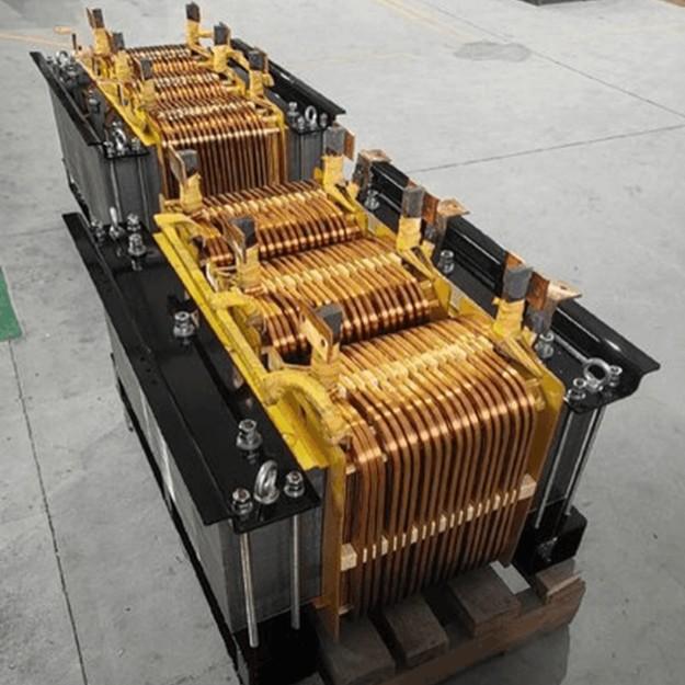 Special barrel wound dry-type transformers employing resin encapsulated VPI (Vacuum Pressure Impregnation) techniques are used to achieve the low-loss, compact design necessary for the space-saving package substation concept. Class H, 220 °C insulation is used throughout. Temperature rise is 150 °C as standard, although 80°C or 115 °C low temperature premium transformers are available through 750 kVA. Aluminum windings are standard with copper as an option. Four full capacity 2-1/2 percent taps are provided-two above nominal voltage and two below.