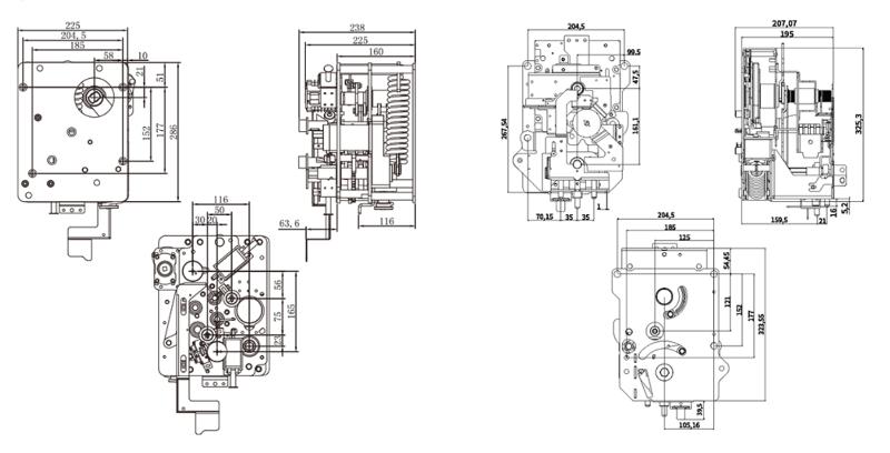 The RNVD-12 SF6 circuit breaker operating mechanism is a supporting equipment suitable for the opening and closing operations of circuit breakers in inflatable high-voltage ring main units. This series of circuit breaker mechanisms uses tension spring midpoint control to close the circuit breaker, and compression spring energy storage control to open the circuit breaker. This product has a reclosing function and an interlocking function when used in combination with an isolation mechanism,. High reliability, with a mechanical lifespan of over 10000 cycles.