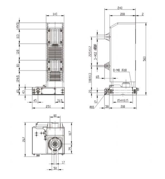 The vacuum interrupter adopts an external bellows, and the bellows is made by the stainless steel lamination welding process. The contact opening distance is 8mm and the overtravel is 2mm. The contacts are designed based on the principle of longitudinal magnetic field arc extinguishing.