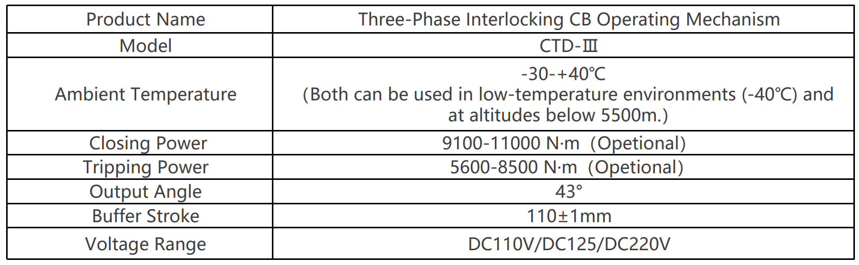 Mekanisme musim bunga CTD-III adalah mekanisme operasi mekanikal tiga fasa berkuasa tinggi yang menggunakan pegas sebagai komponen penyimpan tenaga. Penyimpanan tenaga pegas dicapai melalui peranti putaran motor dan penghantaran gear pelbagai, serta dikekalkan dalam keadaan penyimpanan tenaga melalui sistem pemeliharaan penyimpanan tenaga. Semasa diputuskan, daya magnetik gegelung elektromagnetik melepaskan tenaga yang disimpan dan dikekalkan, menyebabkan pegas melepaskan tenaga. Unit penghantaran mekanikal menggerakkan kontak, seterusnya mencapai operasi pembukaan dan penutupan switch pemutus litar. Strukturnya disusun secara simetri, dengan kuasa kerja yang tinggi, struktur mudah, kehilangan penghantaran rendah, kestabilan dan kebolehpercayaan tinggi.